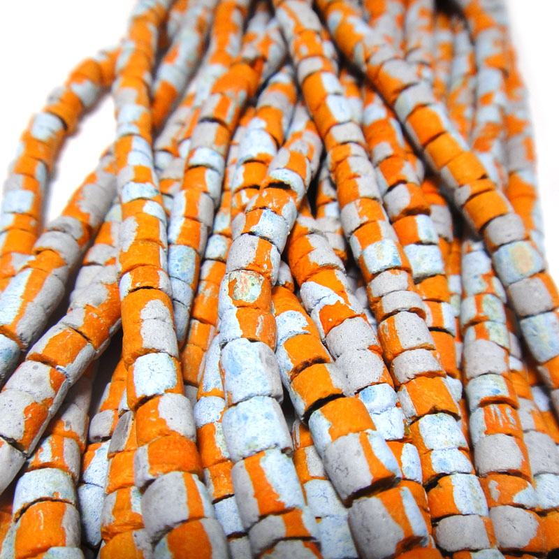 Coco Heishe Wood Beads Painted Orange with contrasting coloured Splashing 4-5mm (~115pce Strand) - 40cm Strand.