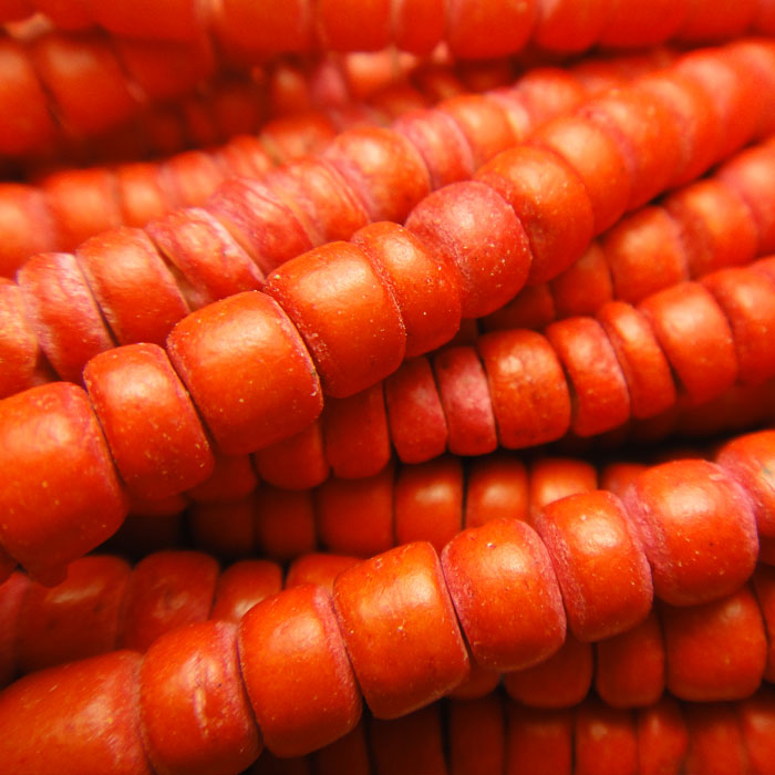 Coco Wood Beads Dyed Orange 4x6mm Approximate (~100pce Strand) - 40cm Strand.