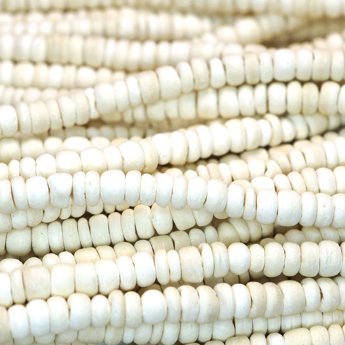 Coco Wood Beads Dyed White 4x6mm Approximate (~100pce Strand) - 40cm Strand.