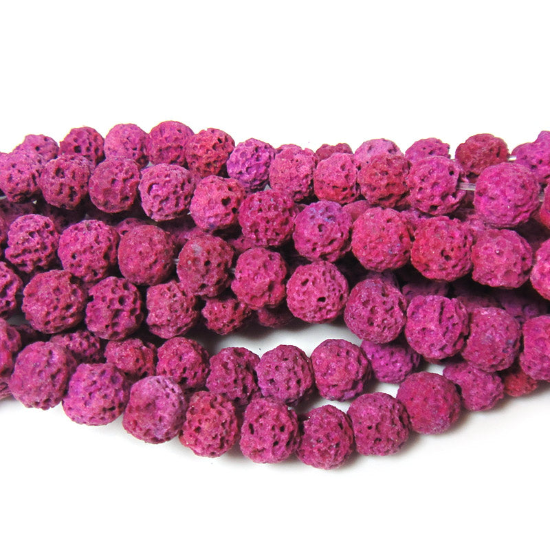 Dyed Lava Rock Fuchsia 6mm Round Beads