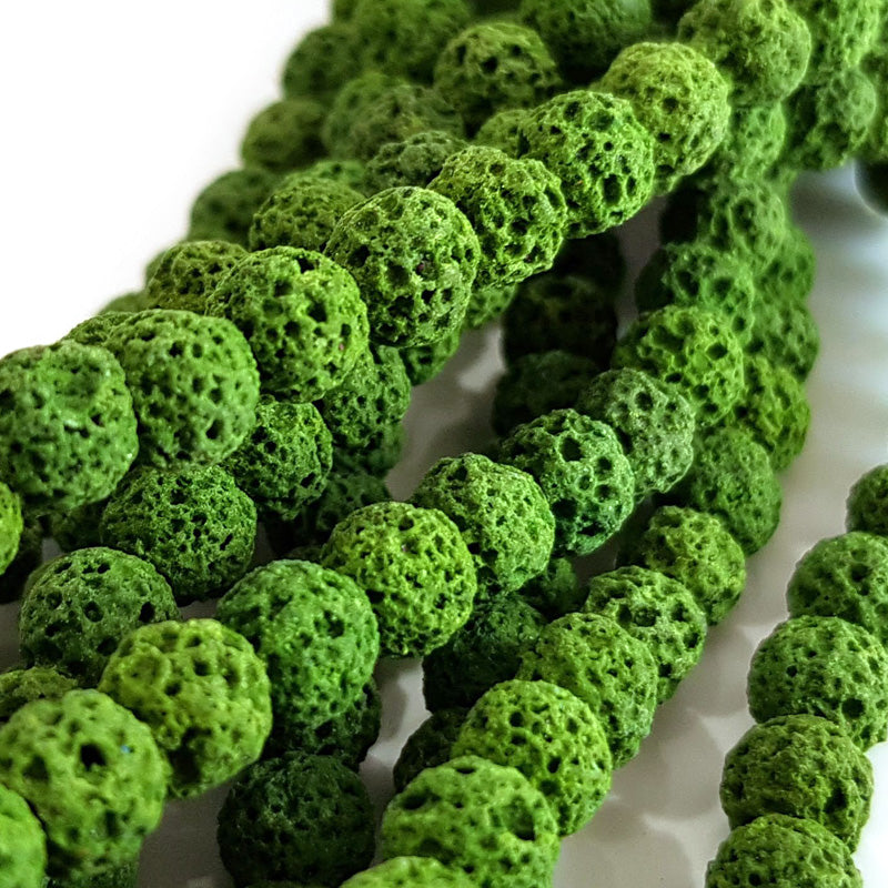 Lava rock beads are made of cooled molten lava. The Lava rocks are shaped and smoothed, leaving the small cavities characteristic to the stone. Lava rock beads are lightweight.