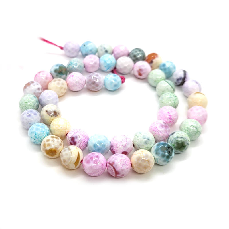 Like most Fire Agate beads around these are not true Fire Agate. Genuine Fire agate is very rare and expensive. The name Fire Agate is now commonly used instead of the correct name "Spider web Carnelian", "Fire Crackle Agate" or "Crab Fire Agate". These unique beads range from solid colours to translucent with hits of an inner glow. The natural stone beads have been enhanced with the use of dyes and a heat treatment to create the spider web crackle effect. It shares the properties of Carnelian.