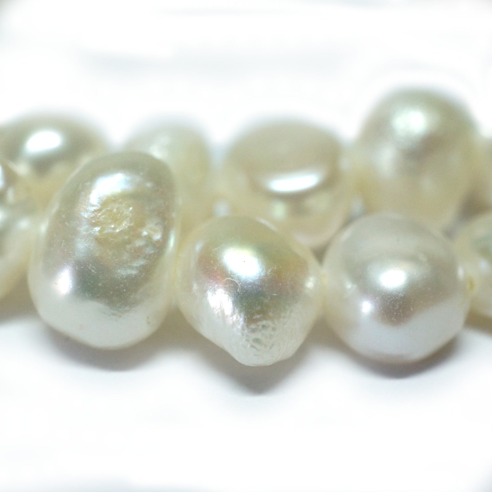 Freshwater Pearls differ from other cultured pearls in that they are not bead nucleated but a small piece of mantle tissue from another oyster is used. The result is a pearl composed of solid nacre, making them quite durable and resisting degeneration.