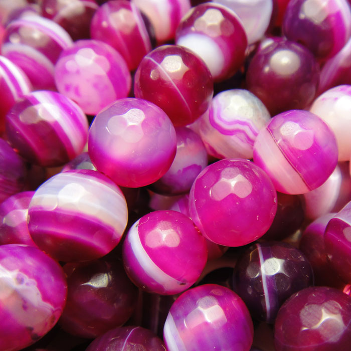 Agate is a naturally banded, translucent variety of Chalcedony, a mineral of the Quartz family. Agate has a wide range of naturally occurring varieties and colours. Fuchsia agate has been dyed to create its amazing vivid pinkish purple colours.