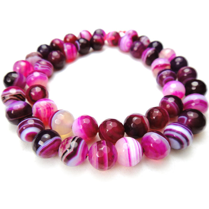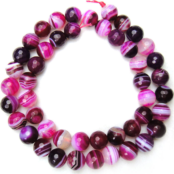 Fuchsia Agate Faceted Round 8mm Gemstone Beads (~50pce Strand) - 40cm/16'" Strand.