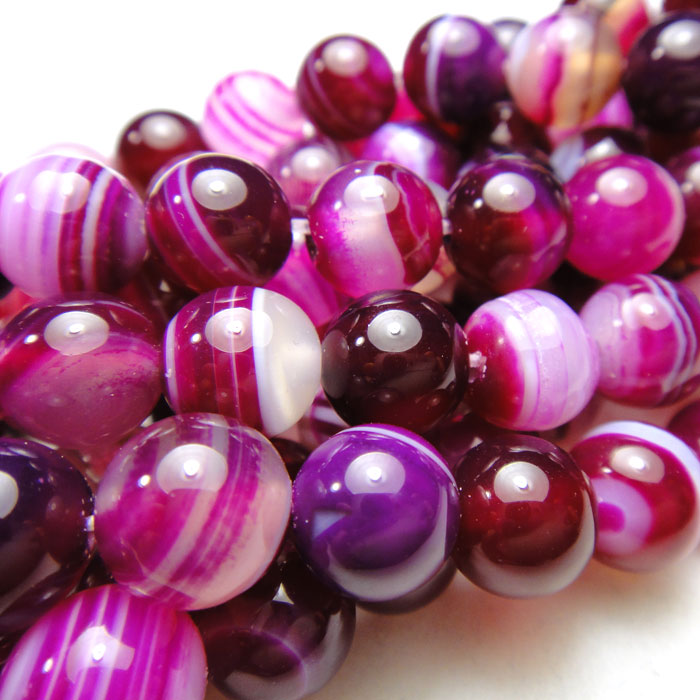 Agate is a naturally banded, translucent variety of Chalcedony, a mineral of the Quartz family. Agate has a wide range of naturally occurring varieties and colours. Fuchsia agate has been dyed to create its amazing vivid pinkish purple colours.