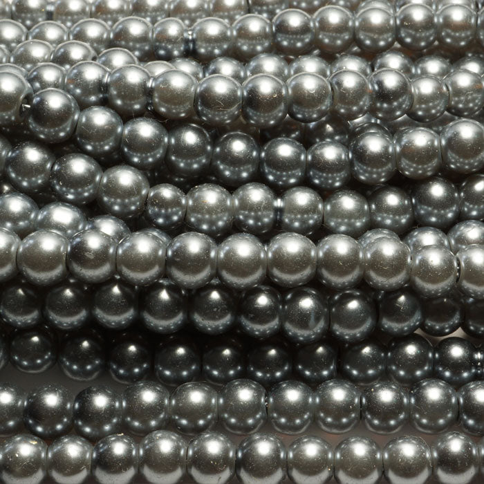 Grey Glass Pearls 6mm Round Beads