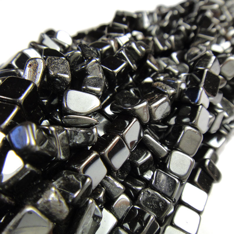 Like most of the hematite on the market, this is hematine is a simulated material virtually identical to real hematite. it even has the same chemical composition - both genuine and simulated hematite are iron oxide. true hematite leaves a red streak when