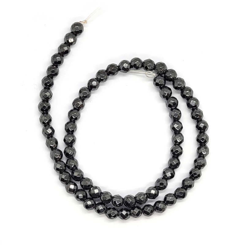 Like most of the hematite on the market, this is hematine is a simulated material virtually identical to real hematite. it even has the same chemical composition - both genuine and simulated hematite are iron oxide. true hematite leaves a red streak when scratched across a piece of unglazed porcelain, while the simulated products usually leave a gray streak. the simulated material is much easier to form into detailed shapes, and still looks and feels like the real material. "hematine," "hemalike" and "hemalyke" are common names used for this product. if you look closely at the hole in a molded bead of simulated hematite, you will often see a smoothly curved hole rather than the slightly chipped and sharply defined edge of a true drill hole. the holes are usually molded into the bead.