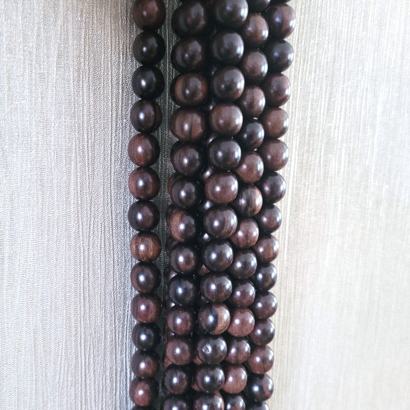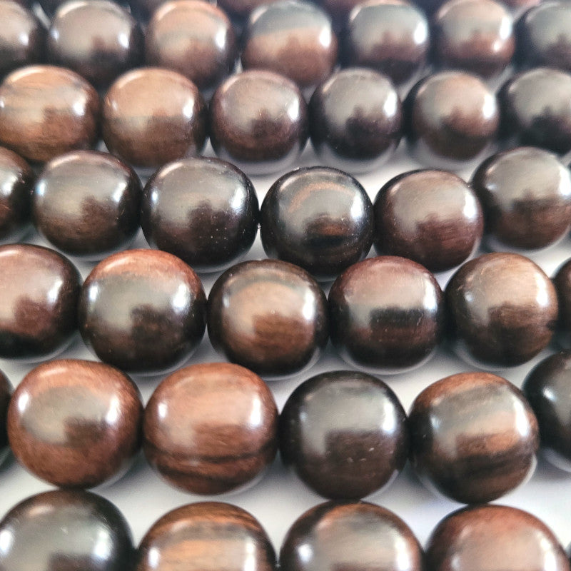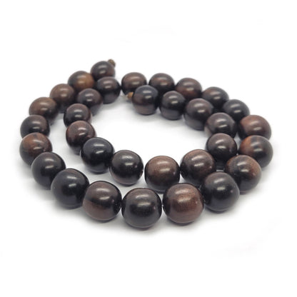 Kamagong (Tiger Ebony) Wood Beads Round 12mm (~33pce Strand) - 40cm/16'" Strand.