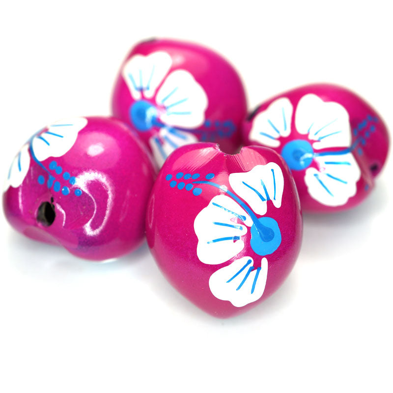 Pack of four hand painted Kutui Nut Beads. Approximate Size: 30x25mm, Hole Size: ~3mm.