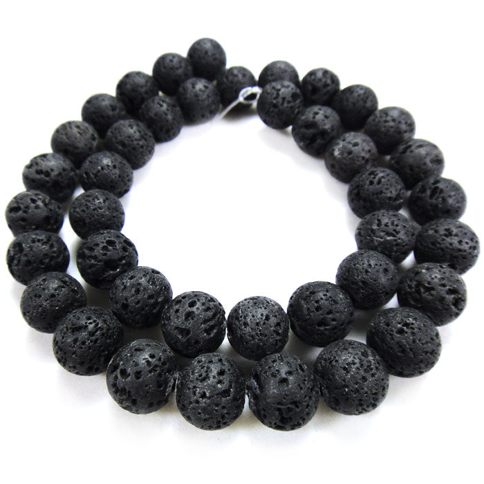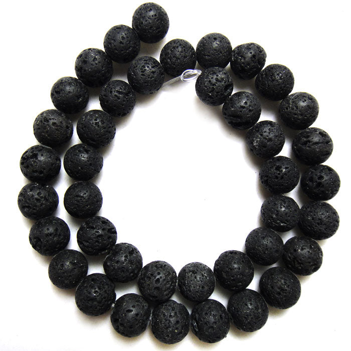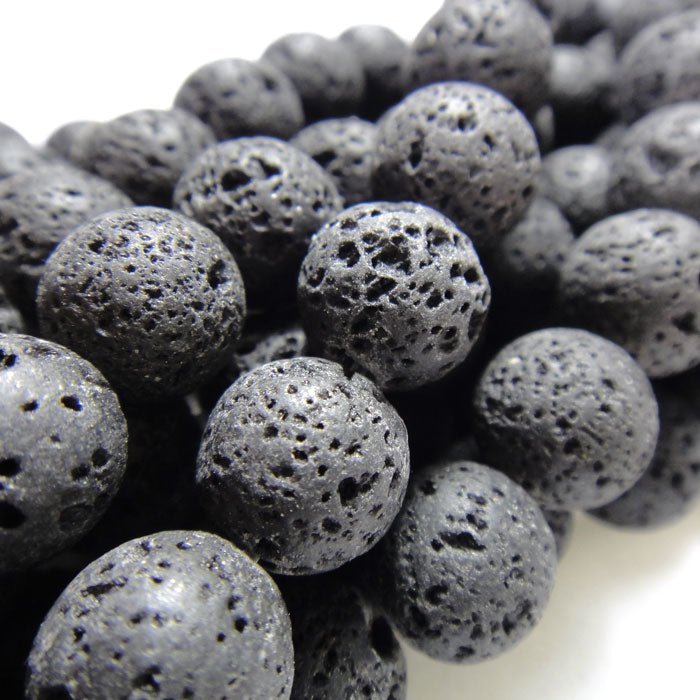 Lava rock beads are made of cooled molten lava. The Lava rocks are shaped and smoothed, leaving the small cavities characteristic to the stone. Lava rock beads are lightweight, smooth to the touch and smells a bit like a barbeque.
