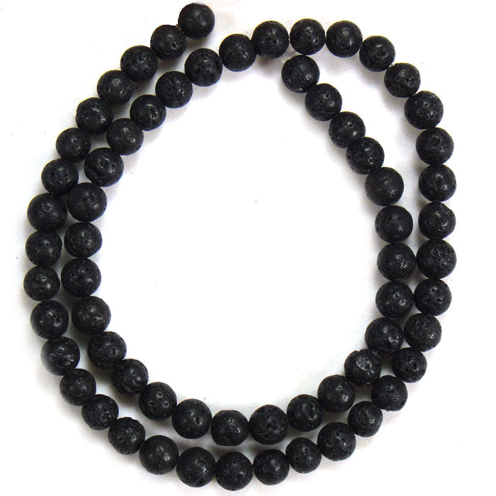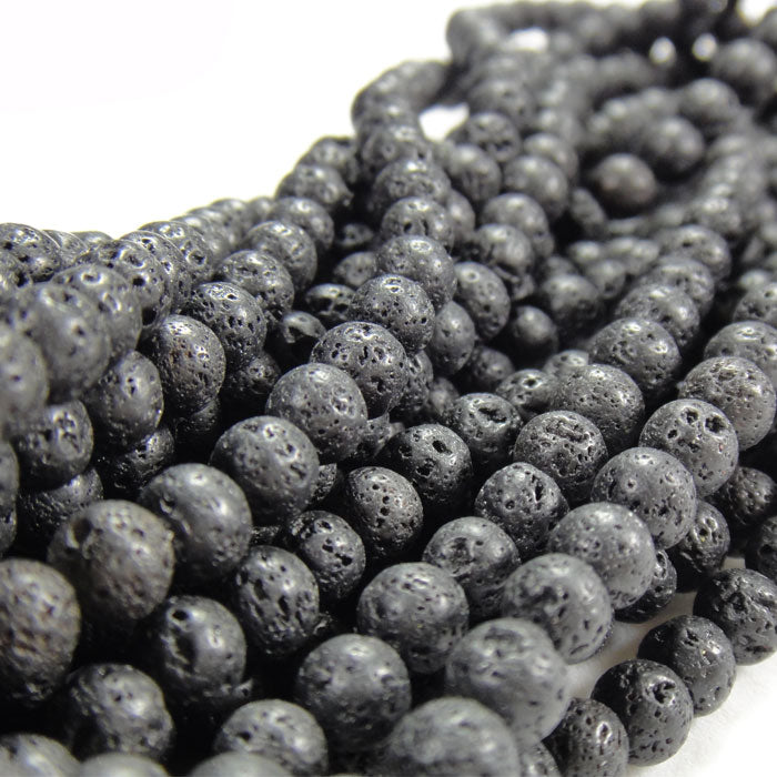 Lava rock beads are made of cooled molten lava. The Lava rocks are shaped and smoothed, leaving the small cavities characteristic to the stone. Lava rock beads are lightweight, smooth to the touch and smell a bit like a barbeque.