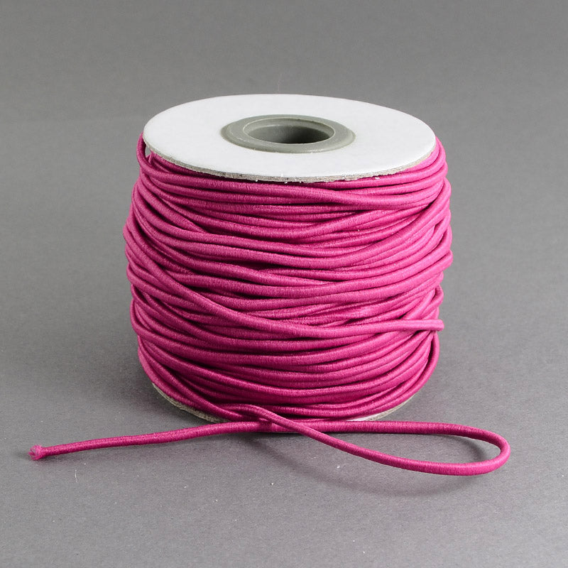 2mm in diameter, 40 meter spool approx. Magenta colour elastic beading cord.