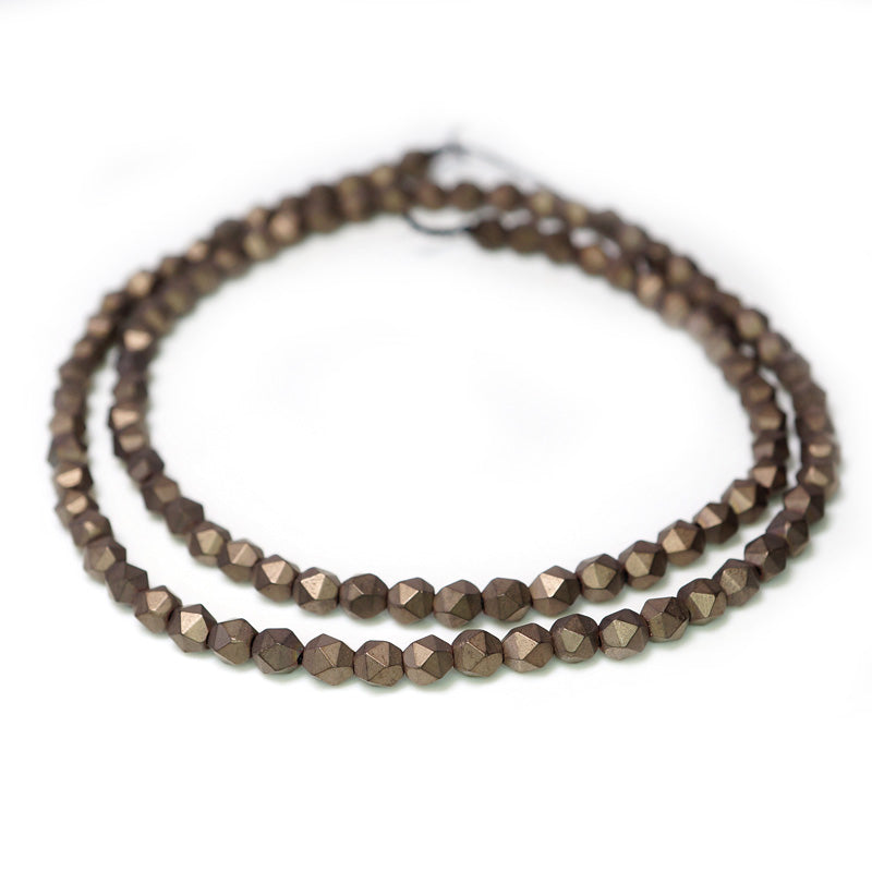 Matte Coffee Hematite 4x4mm Diamond Cut Beads