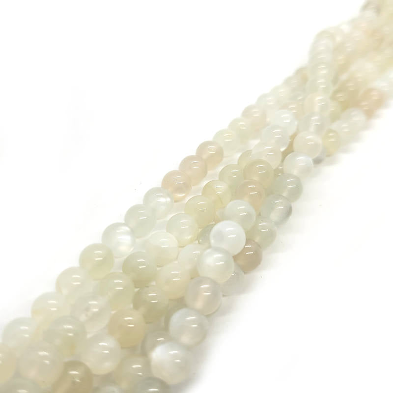 Moonstone Light Grey Gemstone Round 6mm Beads - 38cm/15" Strand.