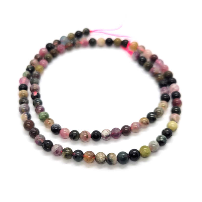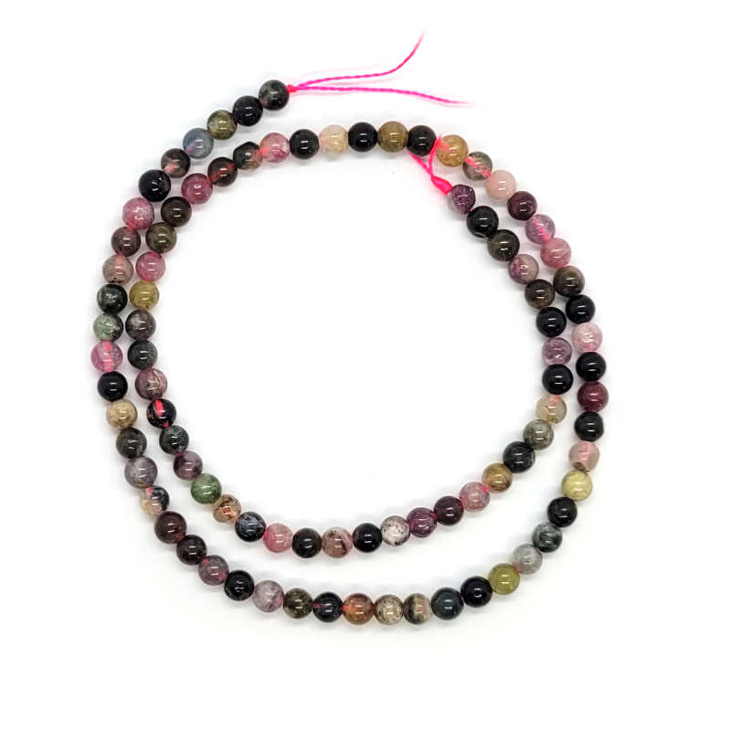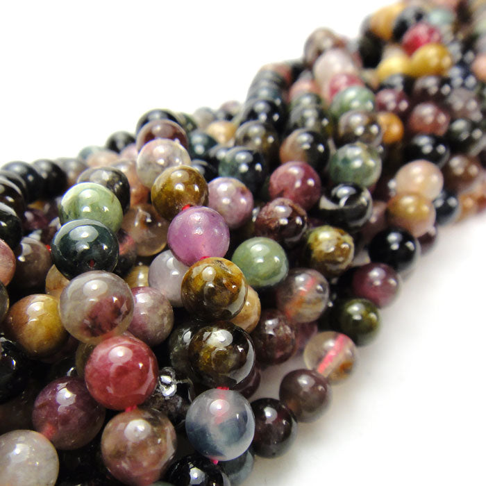 These beads are a mix of Tourmaline colours. Generally include shades of black, brown, pink and green.