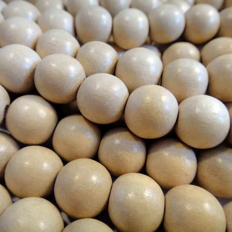 Natural White Wood beads. These beads have been finished in an industry standard wax coating leaving them smooth to touch and have a very subtle buffed sheen.