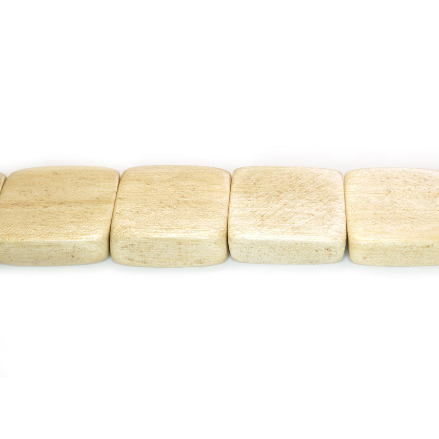 Natural White Wood Flat Square 24mm Wood Beads (~17pce Strand) - 40cm/16'" Strand.