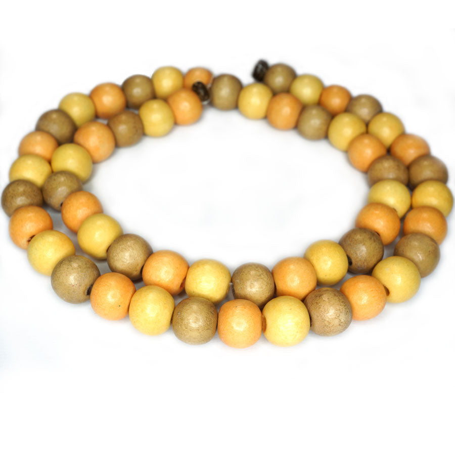 Natural White Wood Mixed Colour 8mm Round Beads - Apricot, Taupe and Champagne (~53pce Strand) - 40cm/16'" Strand.