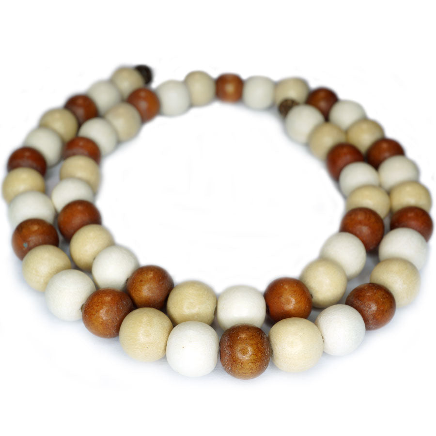 Natural White Wood Mixed Colour 8mm Round Beads - Copper, White and Natural (~53pce Strand) - 40cm/16'" Strand.