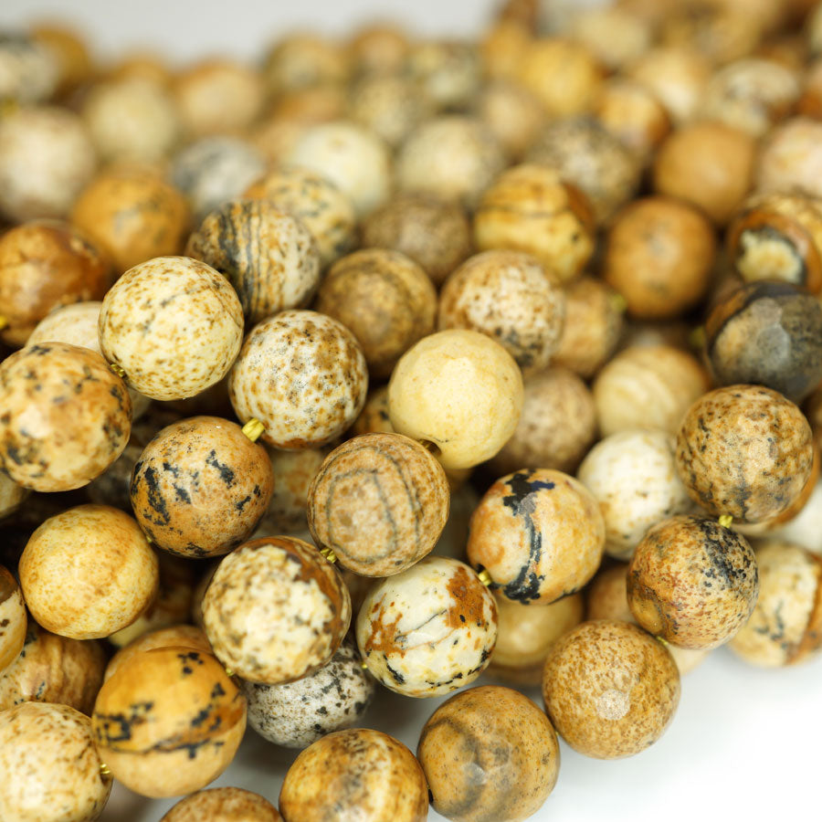 Picture Jasper 8mm Faceted Round Beads