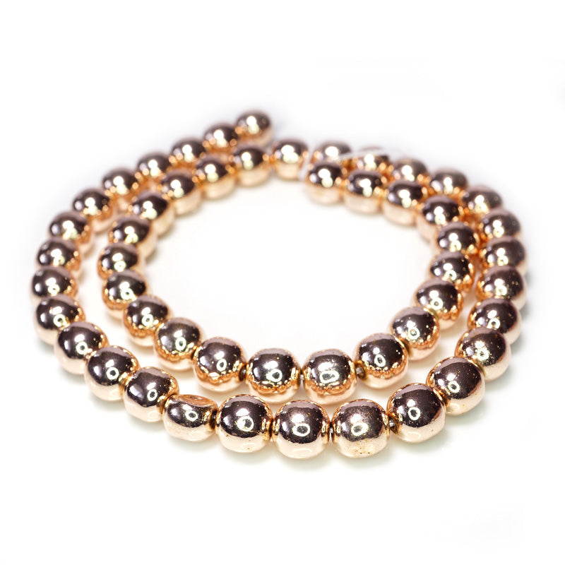 Rose Gold Colour Hematite 8mm Round Beads (~50pce Strand) - approx 40cm /16'" Strand.