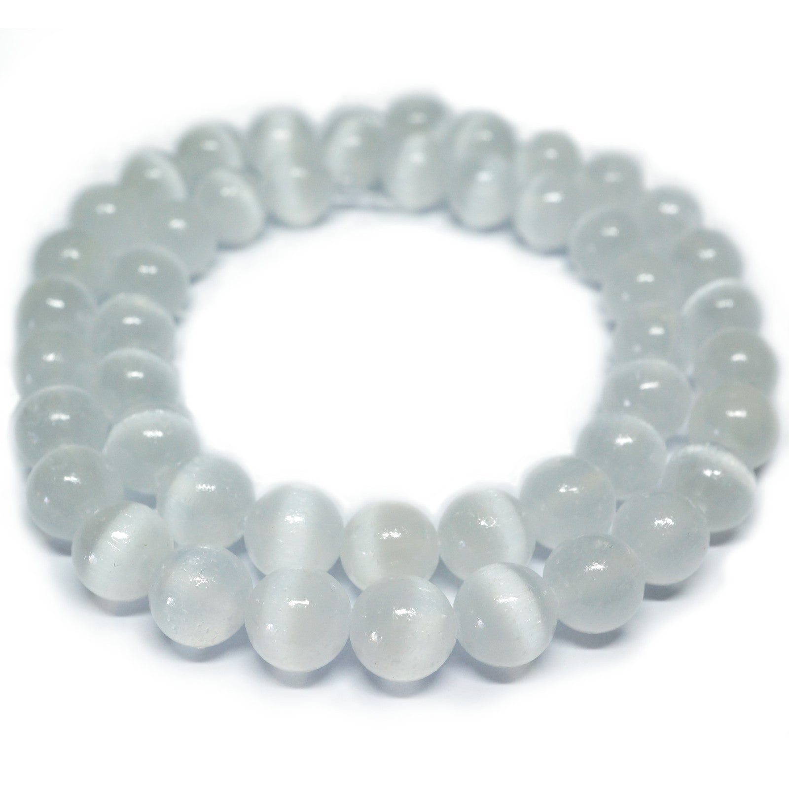 To keep your Selenite beads looking luminous and energetically pure, proper care is essential. Selenite is a very soft mineral, so handle it gently to avoid scratches or breakage. Avoid contact with water, as Selenite is water-soluble and can be damaged by moisture. Store your beads in a soft pouch or a jewellery box away from harder stones. To clean them, simply wipe with a dry, soft cloth — no water or cleaners needed. To recharge their calming and cleansing energy, place them under the light of the full moon or near a piece of natural Selenite. With mindful care, your Selenite beads will continue to radiate clarity, peace, and spiritual light.