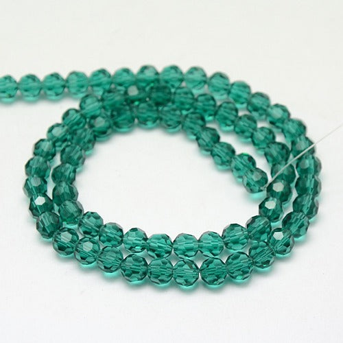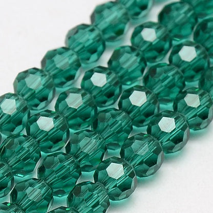 Glass Beads Strands, Faceted, Round, Teal, 6mm, Hole: 1mm; about 91pcs/strand, 21.5"