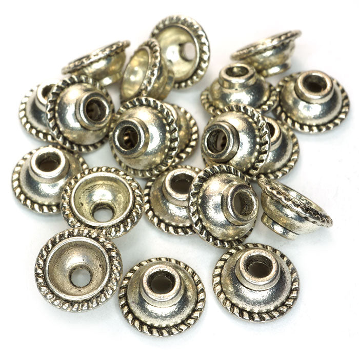 Tibetan Silver 10mm Bead Caps (Pack 20)