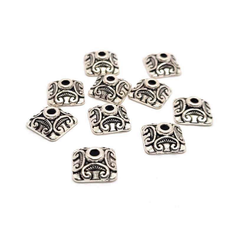 Tibetan 10mm Square Bead Caps (Pack 10)