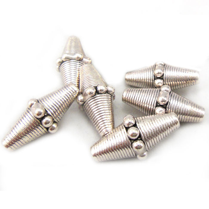 Tibetan Silver 22x10mm Studded Bicone Beads (Pack 6)