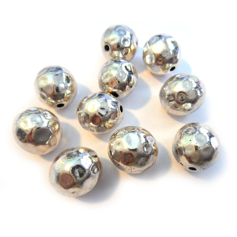 Pack of ten antique silver colour, Tibetan style Faceted metal beads. Size: 10mm, Hole Size: ~1mm
